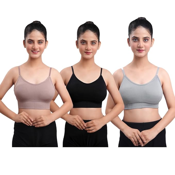 Women’s Cotton Wire-Free Full Coverage Lightly Padded Sports Bra – Comfortable & Supportive Everyday Wear – Pack of 3