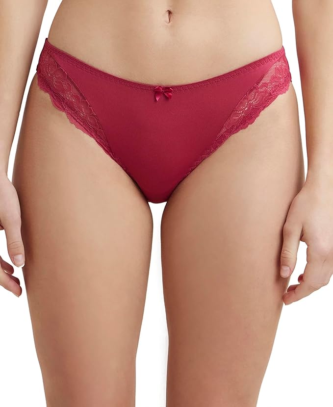 Women’s Medium Coverage Soft Touch Microfiber Nylon Elastane Stretch Mid Waist Lace Styled Bikini with StayFresh Treatment-Red